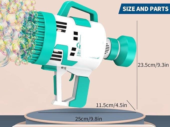 - 48 Holes Bubble Gun: Capable of blowing over colorful bubbles per minute.
