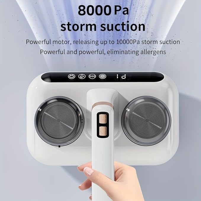 Double Pulsating Head: The cordless vacuum features dual pulsating heads designed for deep cleaning. Combined with strong suction, these heads effectively clean the deep layers of mattresses, ensuring the removal of hidden dirt and debris.