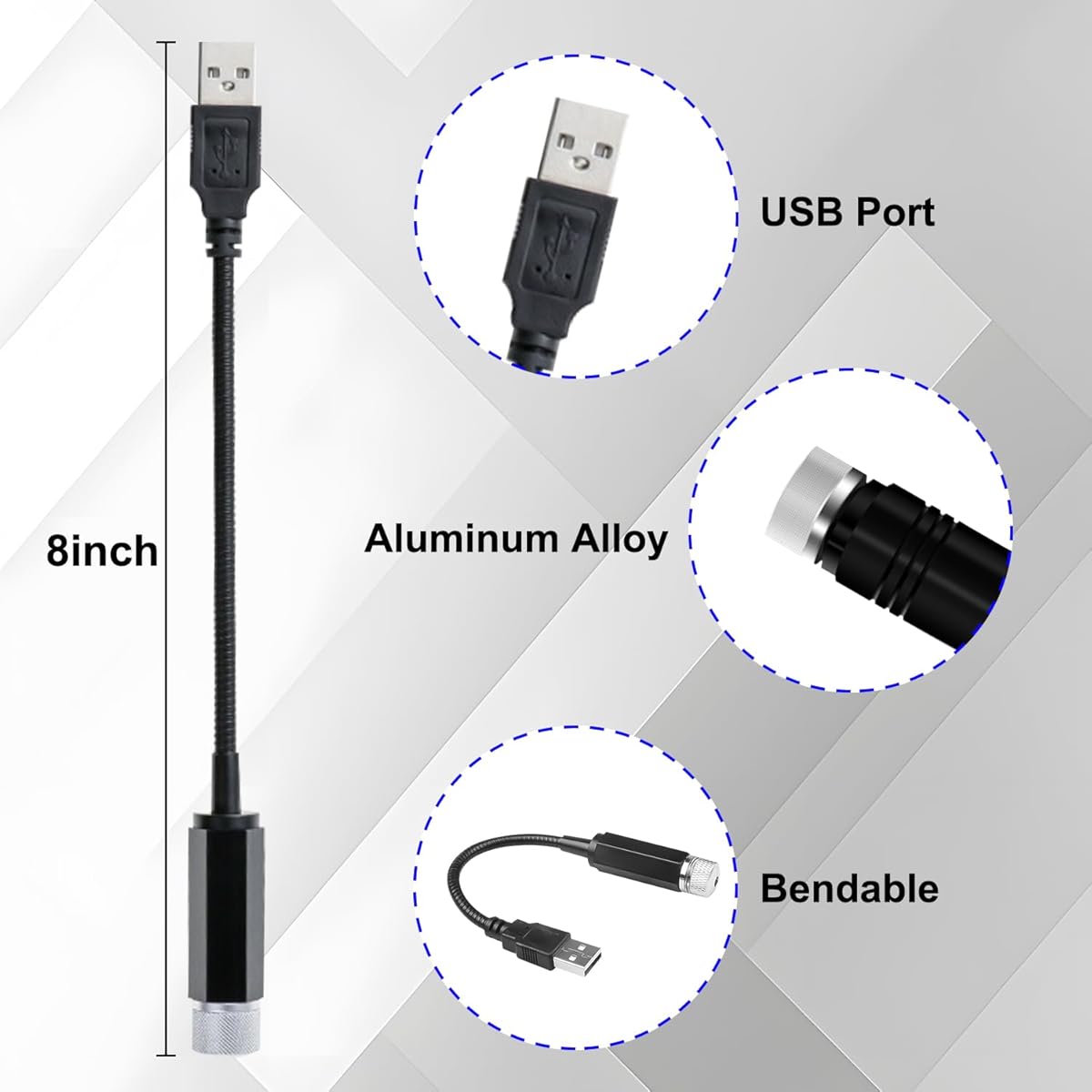 - USB powered – works with car, power bank, computer, or wall charger